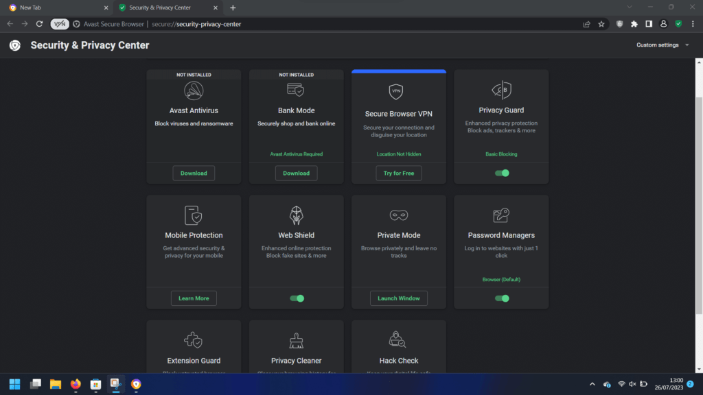 - Built-in VPN: Avast Secure Browser includes a built-in VPN to help protect user privacy. This feature can be used to mask the user's IP address, making their browsing more private and securing their data from potential snoopers on unsecured public Wi-Fi networks.