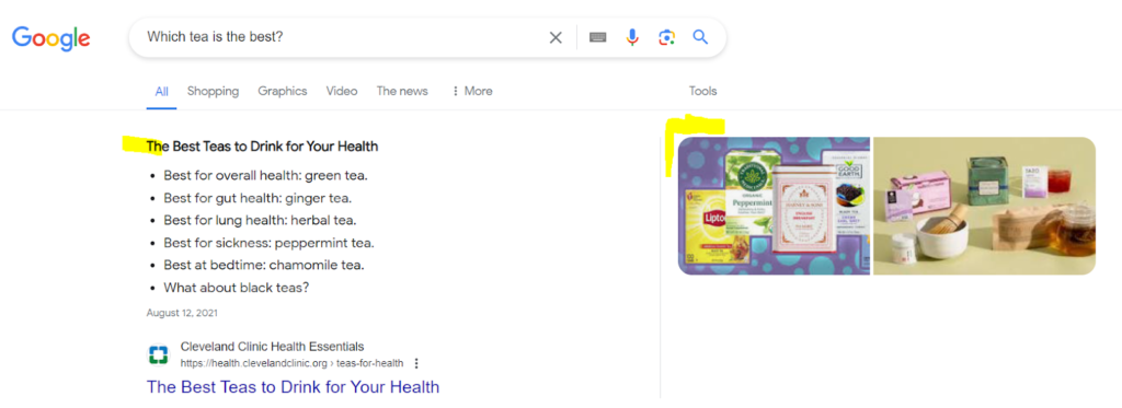 Let’s look together at some examples of organic search results for the same prompt as before below: