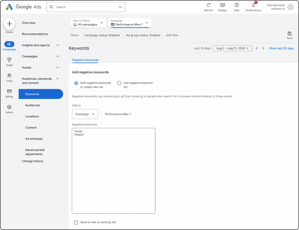 As of 7 August, you can now add negative keyword lists at the campaign level. This makes it much easier to manage exclusions across campaigns, saving you time and cutting out the need for manual updates.