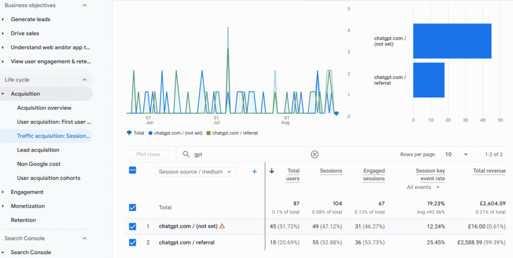 There’s also a tool on the market called Chatbeat. It tracks how visible your brand is across LLM responses. So it's less about traffic, more about presence but definitely worth a look.